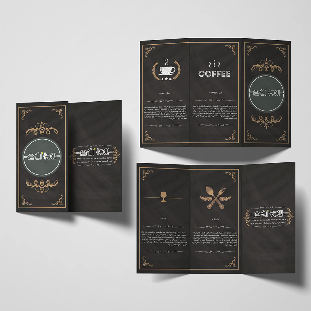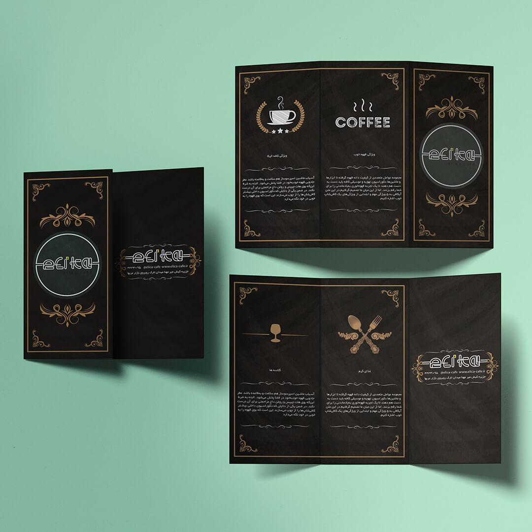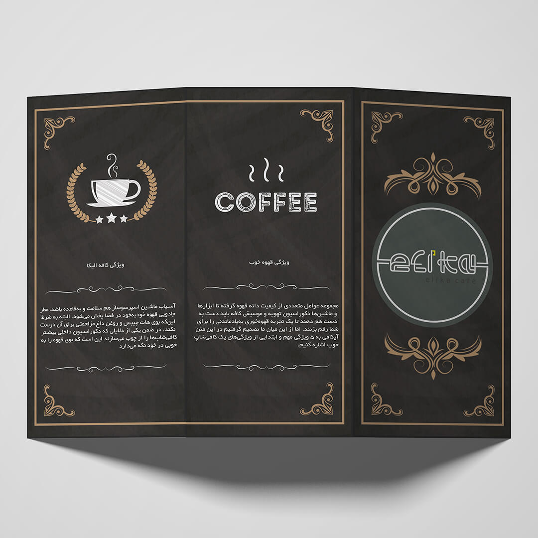 طراحان ما در تیم نگاه هنگام طراحی بروشور کافه الیکا، به ارتباط فرم و محتوای بروشور توجه داشته اند.طرح کافه الیکا از نوع بروشورهایست که حالتی جذاب و برش و تای زیبایی دارد. اما در طراحی برای یک دستگاه صنعتی، بهتر است ظاهری ساده تر طراحی شود تا مخاطب کمتر با شکل درگیر شود و بتواند بر محتوا و پیام تبلیغاتی شما تمرکز کند.