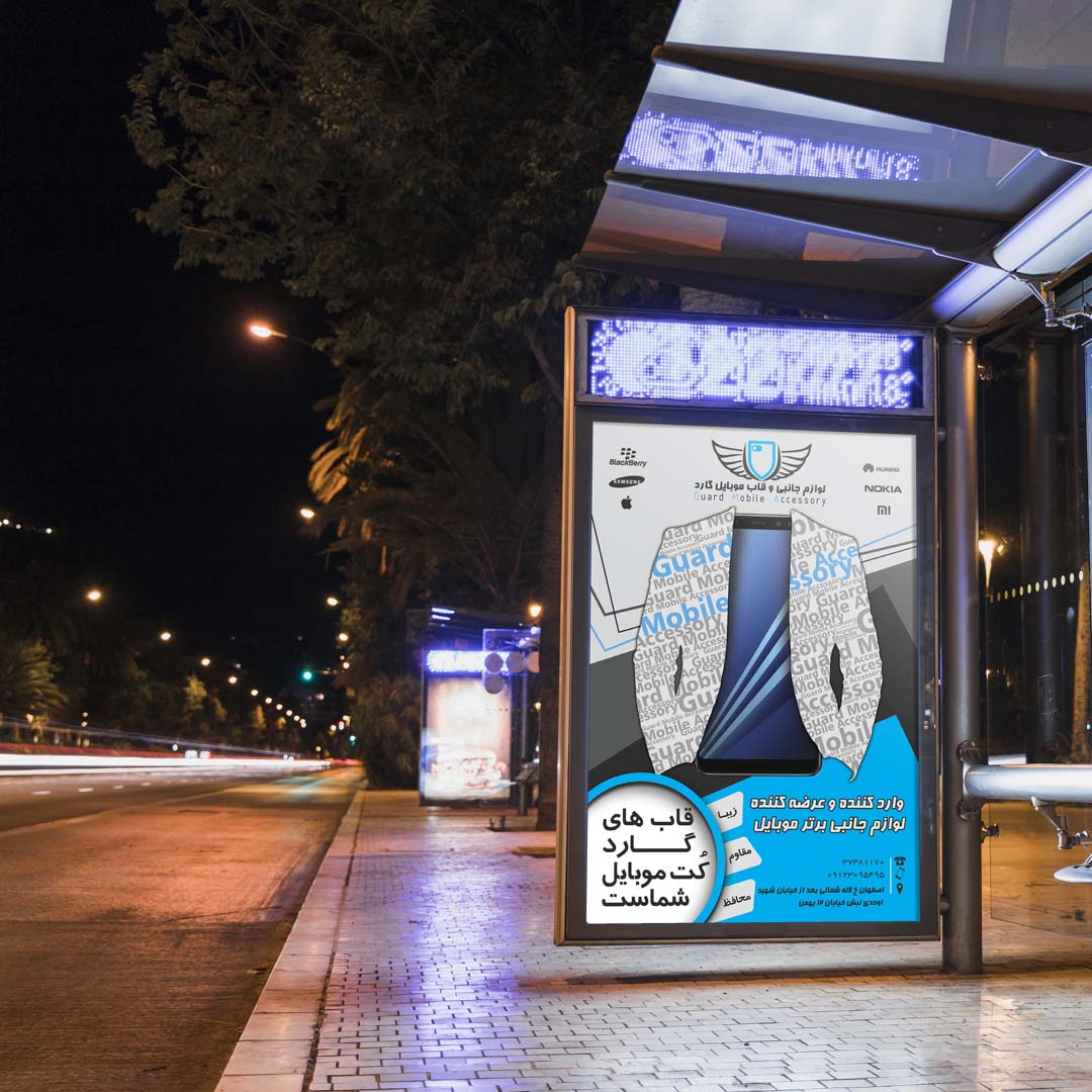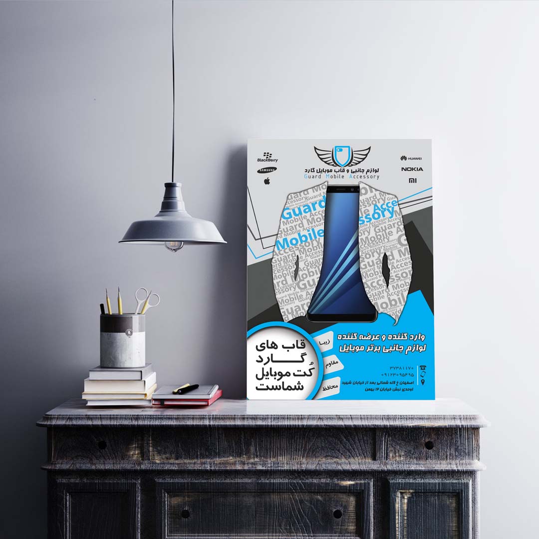 در پوستر گارد که توسط کادر مجرب و حرفه ای نگاه طراحی شده است،خواستار نشان دادن یک فرم و لباس مناسب برای تلفن همراه شما و لوازمات جانبی آن میباشد.